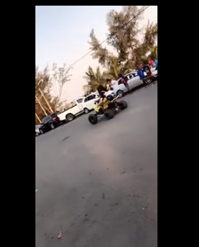 A lady has landed in a hospital with broken buttocks after she decided to ride a beach motorbike. In a video footage which has gone viral online, the lady can be seen riding the motorbike before colliding with a vehicle and falling on the ground.