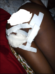 The lady was rushed to the hospital after breaking her buttocks and is said to be doing fine after receiving medical attention.