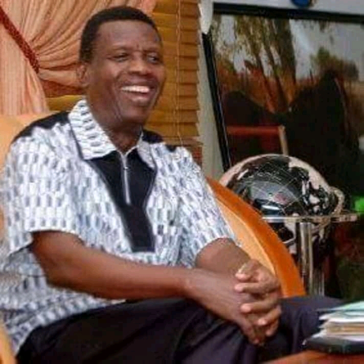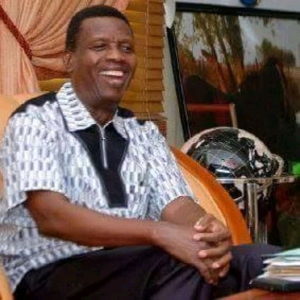 Pastor Adeboye plays keyboard as his pastors sing along with the sound,