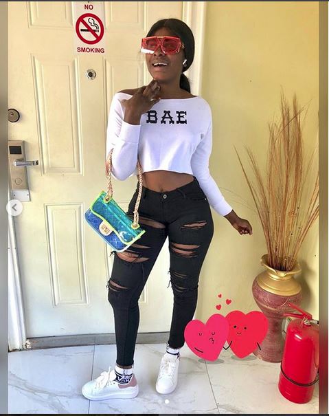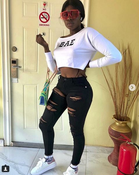 Wearing a shirt with its buttons opened, exposing parts of her round b000bs, the actress disclosed that, this time around girls like herself are no longer interested in dating broke guys, so if any guy wants to date her, the person should be ready to buy her brand new clothes and must drive a brand new car.