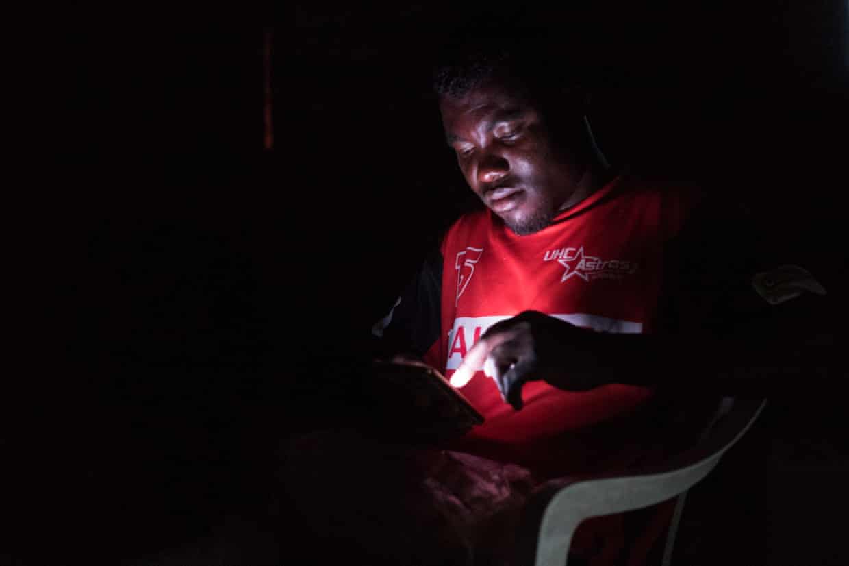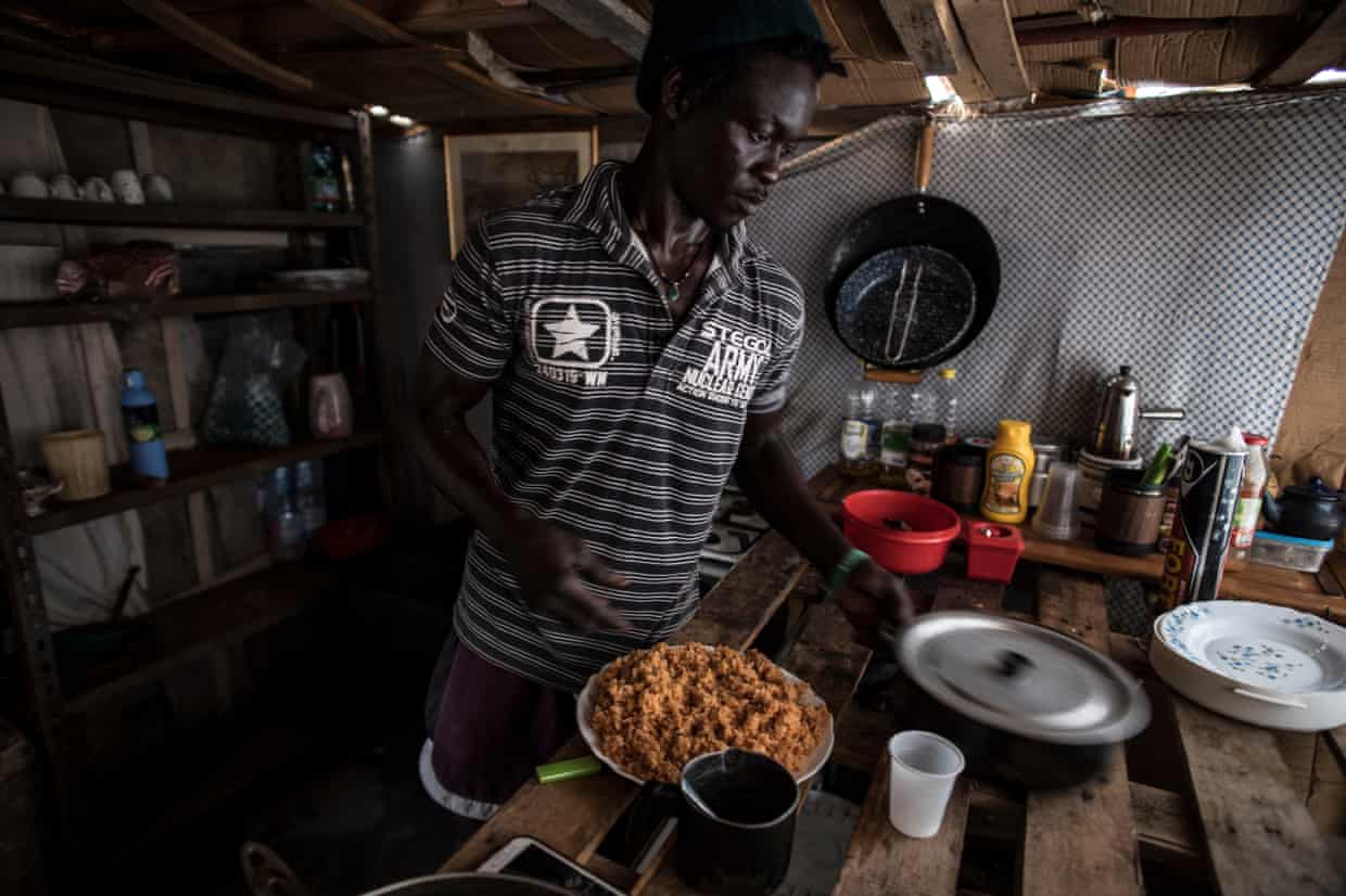 In the evening, while a small fire glows to light their shacks, it’s time to phone relatives back home. Asuma Yaw, a 45-year-old Ghanaian, lives next door to Thierno. He left Ghana in 2015 in search of work in Europe and to pay for his daughter’s university education.