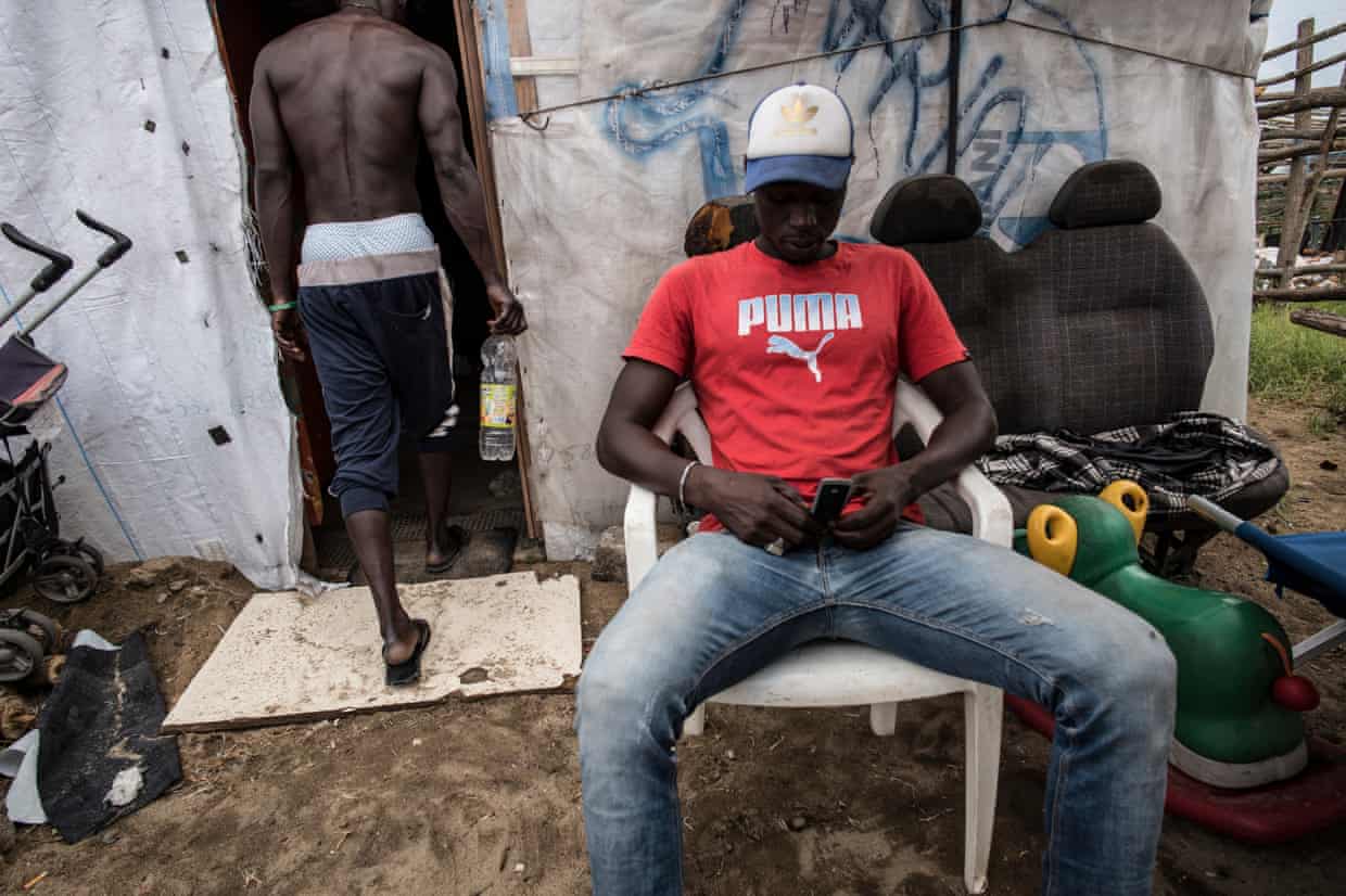 Main image: A man in a tent at San Ferdinando migrant camp in Sicily. Photograph: Sean Smith for the Guardian