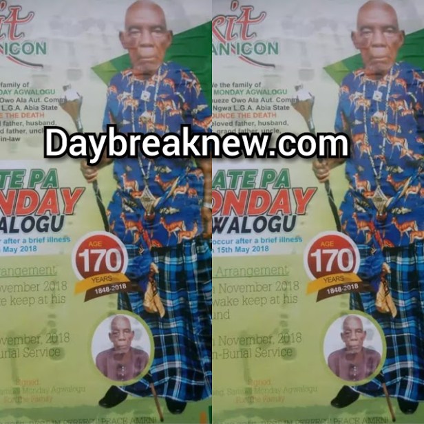 Nigerians have revealed their surprise following the obituary poster of a man who is said to have died at the age of 170 (1848 – 2018).