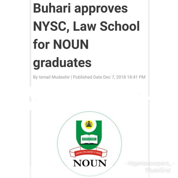 The graduates of the NOUN can now participate in the National Youth Service Corps (NYSC) and the Nigerian Law School.