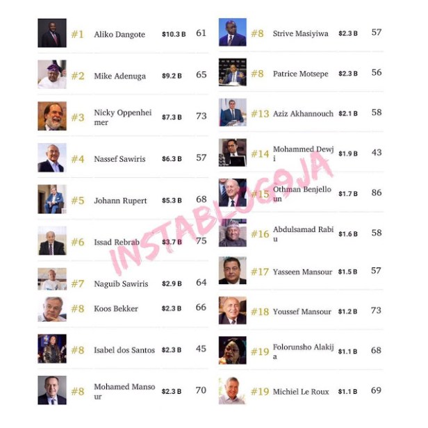 Uncategorized Forbes releases the 2018 list of Africa’s richest billionaires. Date: January 10, 2019Author: daybreaknewonline 0 Comments Forbes releases the 2018 list of Africa’s richest billionaires. Share this: Share on X (Opens in new window) X Share on Facebook (Opens in new window) Facebook Share on LinkedIn (Opens in new window) LinkedIn Share on Pinterest (Opens in new window) Pinterest Share on Telegram (Opens in new window) Telegram Share on WhatsApp (Opens in new window) WhatsApp Email a link to a friend (Opens in new window) Email Like Loading... Related