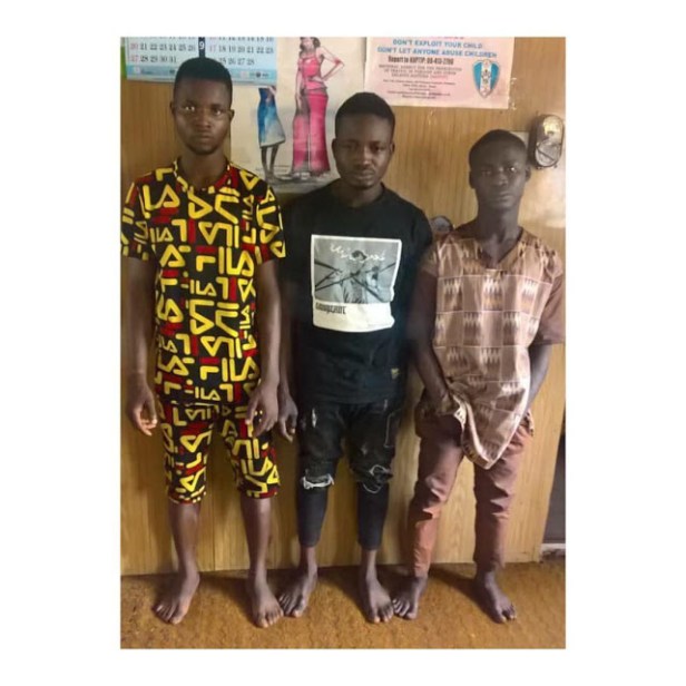 The suspects; Ramoni Yusuf, 24, Abiodun Sikiru, 23, and Moses Oluwasegun 23 were arrested following a complaint lodged by the victim at Adatan Divisional Police Headquarters.