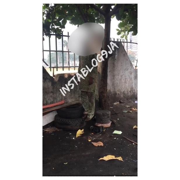 The body of the man was found dangling from a tree opposite the High Court on Catholic mission street, Lagos island. The motivation behind his action is still unknown.