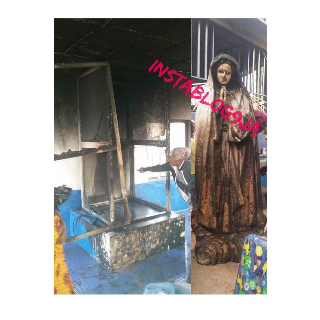 There was chaos, this morning, at St. Jacob’s Parish, Orba, Enugu State, as the statue of Virgin Mary’s was set ablaze.