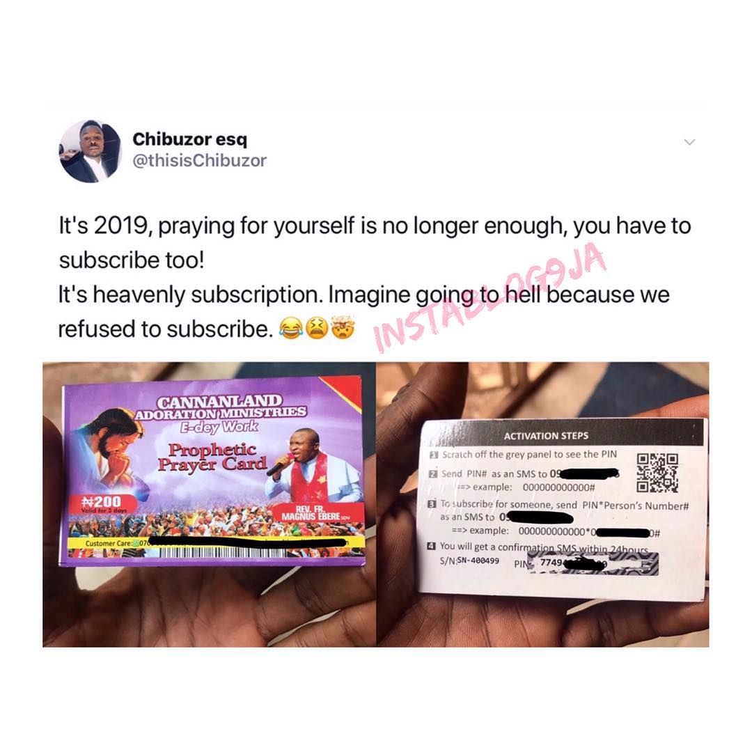 Where are will going to? Nigerian church begins the sales of prophetic prayer recharge cards, prayers suppose to be free because Jesus never sell any prayer to any man free you receive freely you give that is what Jesus said to his disciples ,this show the sign of end time .