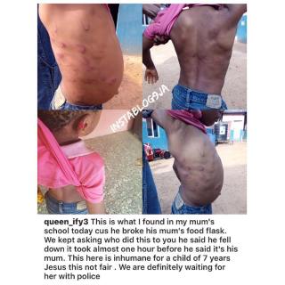 Mom brutalises her son for breaking her food flask at New Heaven, Enugu, Enugu State