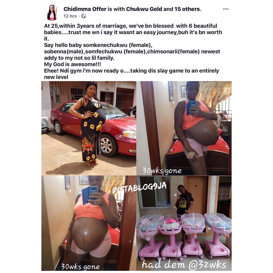 Uncategorized Amazing : 25-yr-old lady welcomes 6 children within 3 yrs of marriage Date: February 3, 2019Author: daybreaknewonline 0 Comments 25-yr-old lady welcomes 6 children within 3 yrs of marriage Read text on image below Read Also: How to Recover Files From Formatted PC //native.propellerads.com/1?z=1983596&eid= Share this: Share on X (Opens in new window) X Share on Facebook (Opens in new window) Facebook Share on LinkedIn (Opens in new window) LinkedIn Share on Pinterest (Opens in new window) Pinterest Share on Telegram (Opens in new window) Telegram Share on WhatsApp (Opens in new window) WhatsApp Email a link to a friend (Opens in new window) Email Like Loading... Related