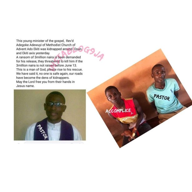 The Ekiti State Police Command has arrested a priest in the Methodist Church, Rev. Peter Adegoke Adewuyi for faking his own kidnap to collect ransom from church members and other individuals.