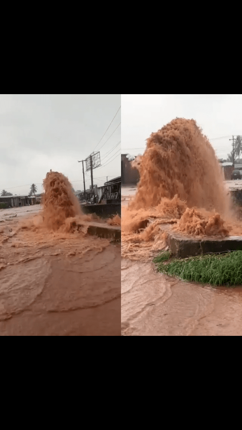Nigerian Man Cries Out After Spotting Mysterious Water Fountain Caused By Heavy Flood After Rainfall