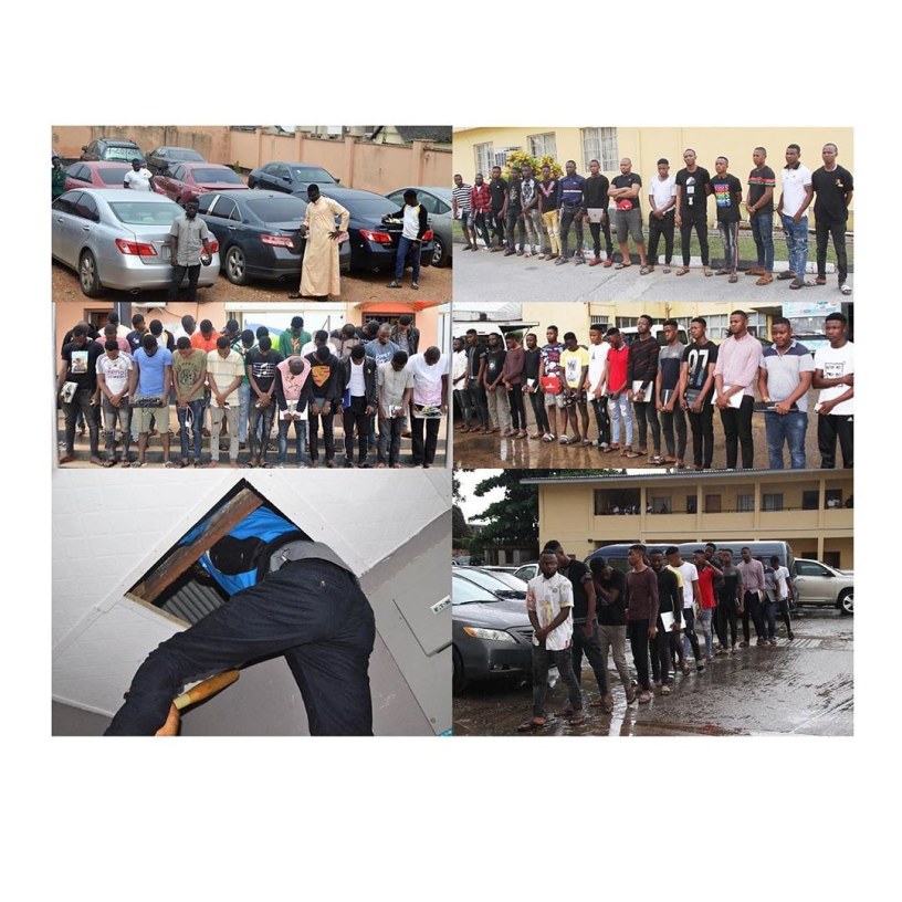 The suspects were arrested on Thursday, June 13 and Friday, June 14, 2019 in Abeokuta, Ogun State. Items recovered from the suspects include seven cars, 25 phones and 10 laptops. The suspects will soon be charged to court.