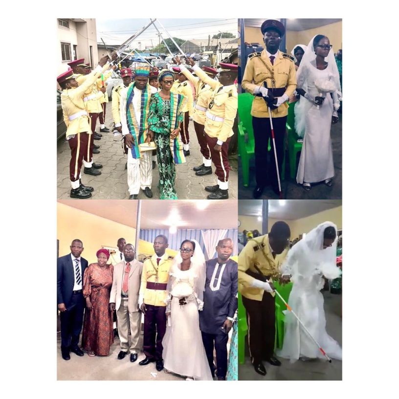Yesufa Olawale, a LASTMA officer who lost his sight while carrying out his lawful duty, has tied the knot with his fiancée.