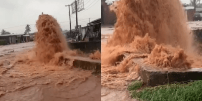 Nigerian Man Cries Out After Spotting Mysterious Water Fountain Caused By Heavy Flood After Rainfall